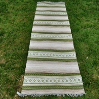 Opgrader din boligindretning med den stilfulde og miljøvenlige '68 x 228 cm. Creme, army farvet retro plastik løber fra Sverige'. Denne unikke løber er designet med et iøjnefaldende stribet mønster i diskrete creme og army farver, der tilføjer en moderne, men samtidig retro charme til ethvert rum.