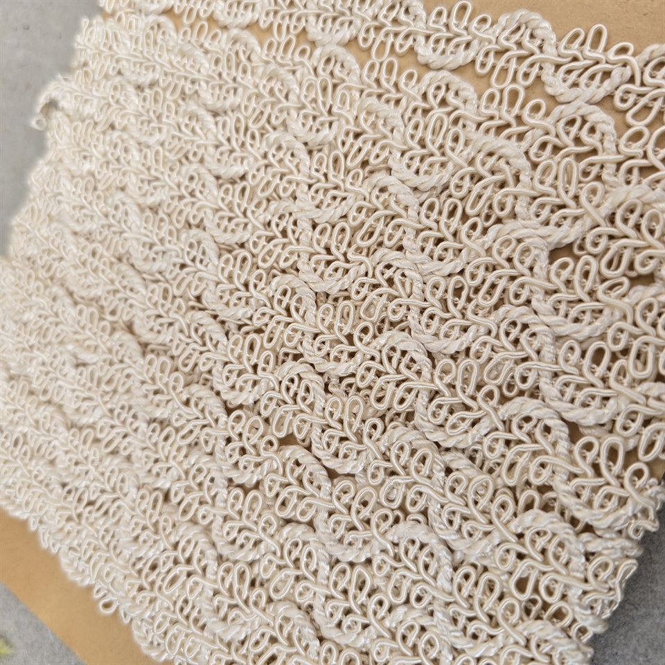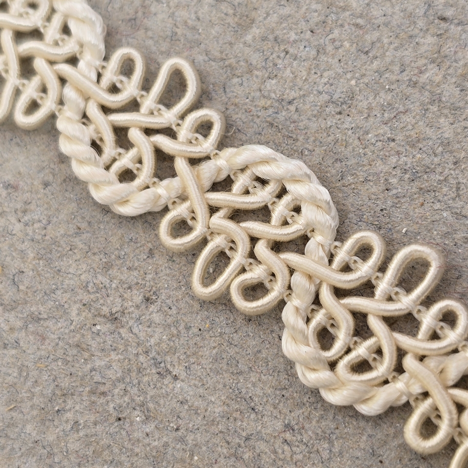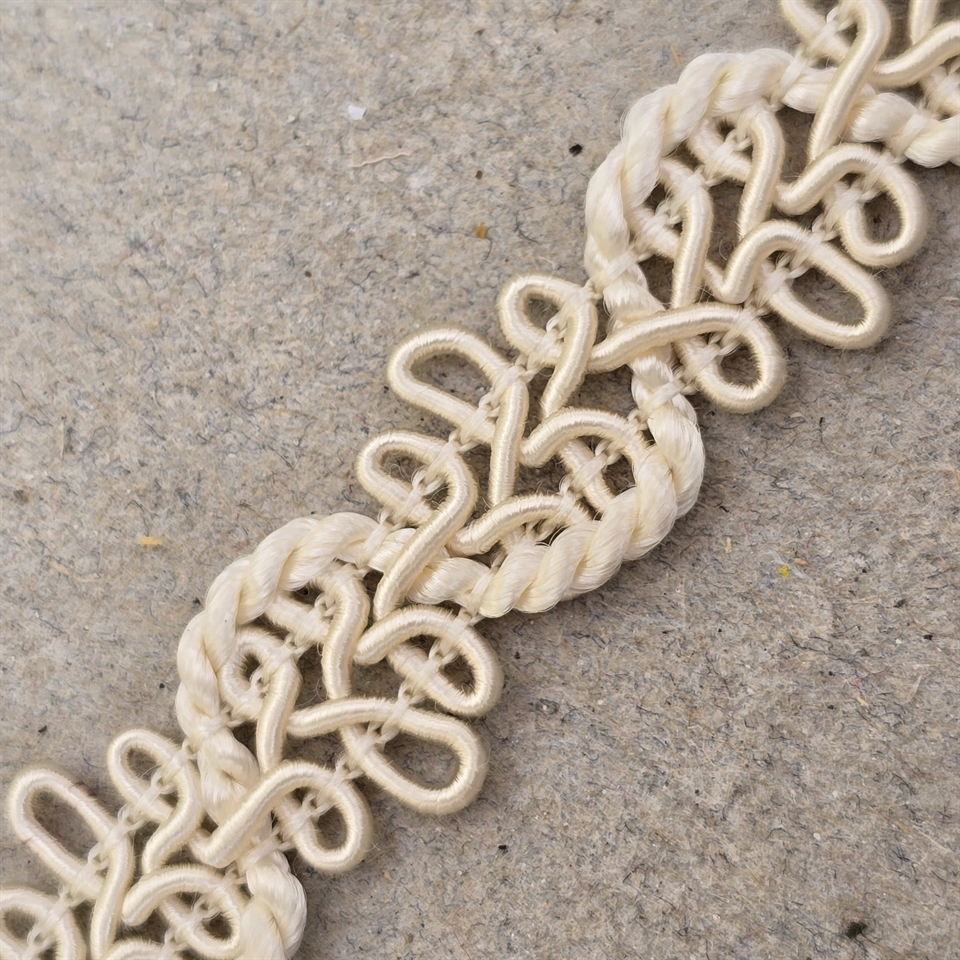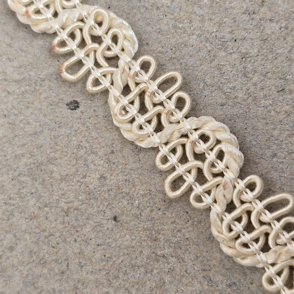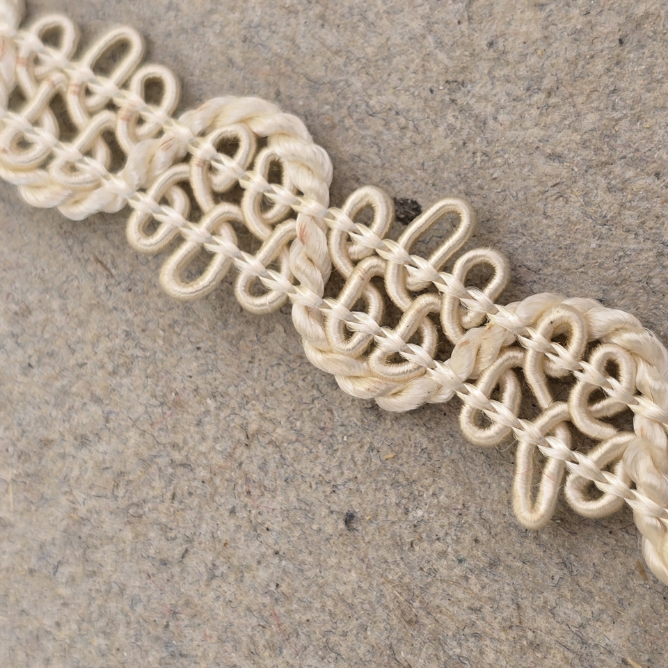 Se skønheden og elegancen i vores eksklusive 'Cremefarvet possementbånd, gammelt italiensk'.