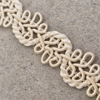 Dette autentiske possementbånd er fremstillet i Italien og præsenterer en klassisk snoet tråd design, der tilføjer et tidløst touch til enhver tekstil eller håndarbejdsprojekt.