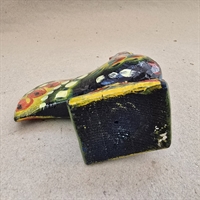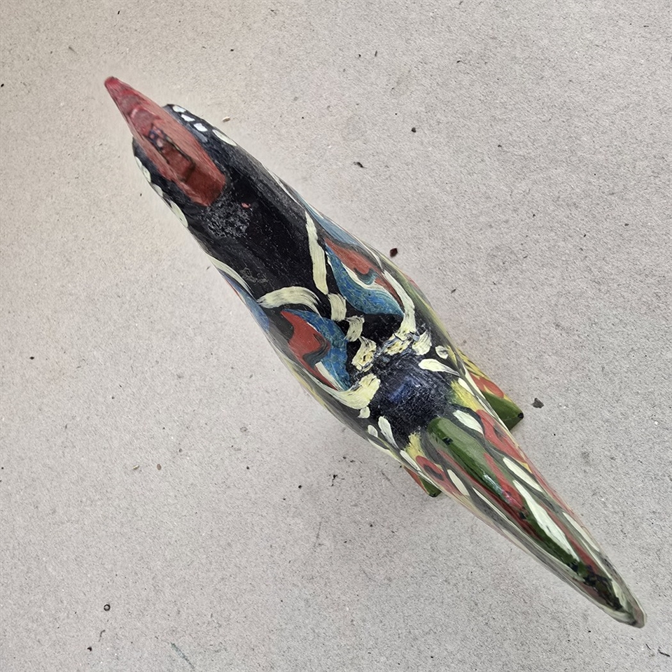 Denne gamle og multifarvede træfigur er mere end bare en dekoration; det er et stykke historie og håndværk.