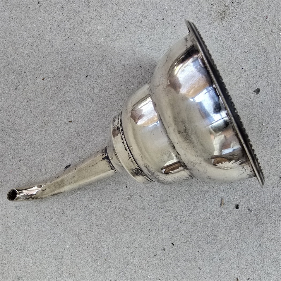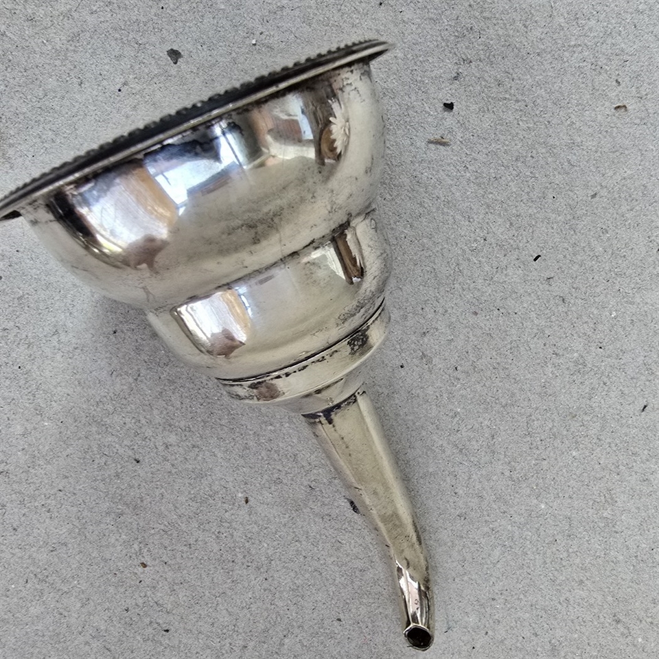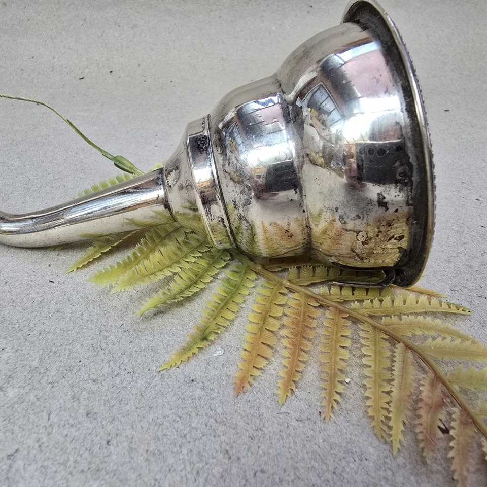 Denne imponerende vintragt, udført med en ekstraordinær forarbejdning, er det ultimative tilbehør til den sande vinentusiast. Med en længde på 13,8 cm. og fremstillet i forsølvet metal, repræsenterer denne dekanteringstragt en fusion af tradition og luksus.