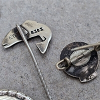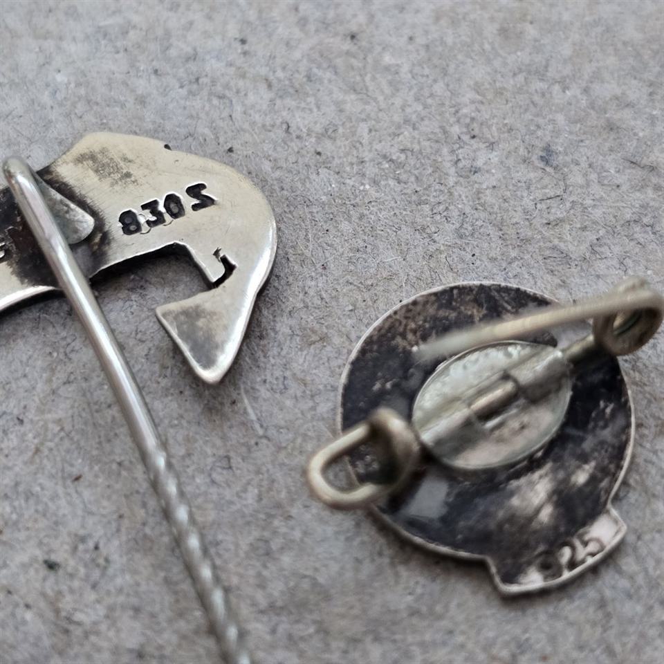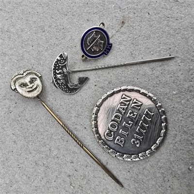 Opdag en fortryllende samling af nostalgi og elegance med vores eksklusive udvalg af vintage reklamenåle. Præsenteret under titlen "Diverse nåle, HK, SAS sølvnål, gamle reklameting," byder denne samling på en ekstraordinær blanding af historie og raffinement.