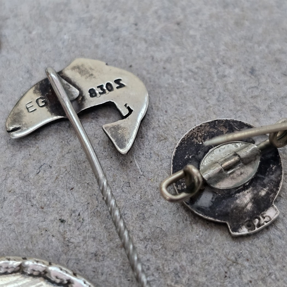 Disse nåle repræsenterer en svunden tid, hvor detaljer og kvalitet var i højsæde. De er ideelle til at fremvise på elegante jakkeslag eller som en del af en sofistikeret samling i hjemmet eller kontoret. Deres tidløse appel og udsøgte håndværk sikrer, at de vil blive beundret og værdsat af generationer.