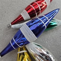 Disse unikke, 13 cm. lange glaskugler kommer i en blanding af blå, guld, sølv, rød og grøn, hver især omhyggeligt hånddekoreret med fine snefnugdetaljer, der tilføjer en følelse af vinterens vidunder til dit juletræ.