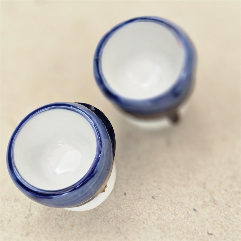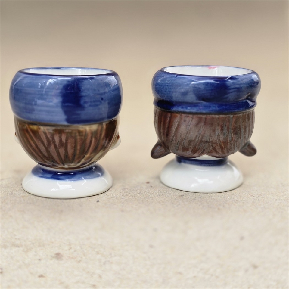 Sæt med 2 stk. er en sand skat for enhver, der værdsætter det nostalgiske og unikke i hverdagen. Disse æggebægre er ikke bare funktionelle, de er små kunstværker!