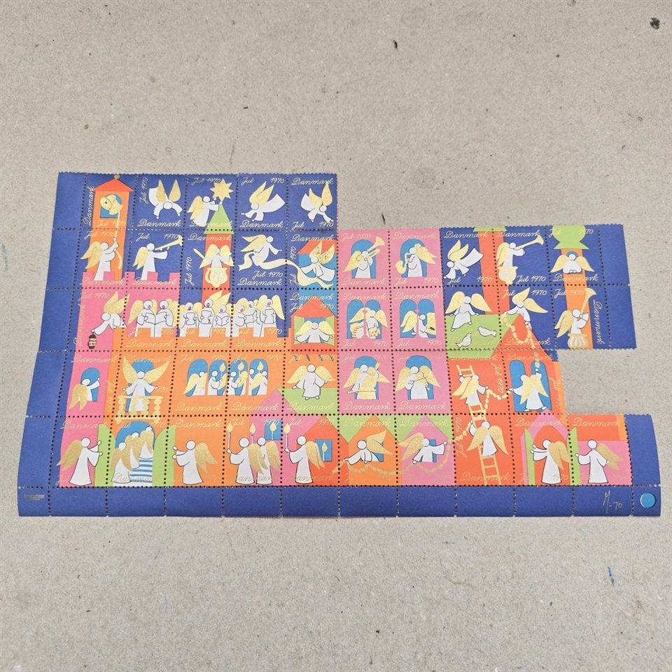 Disse betagende julemærker prydes af hvide engle og gyldne slotte, designet under selveste Dronning Margrethes unikke kunstneriske vision i hendes første år som dronning.