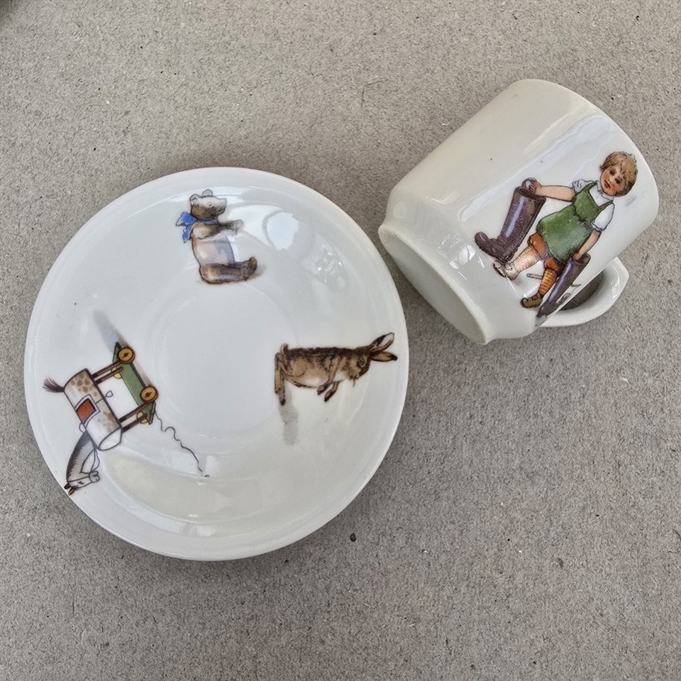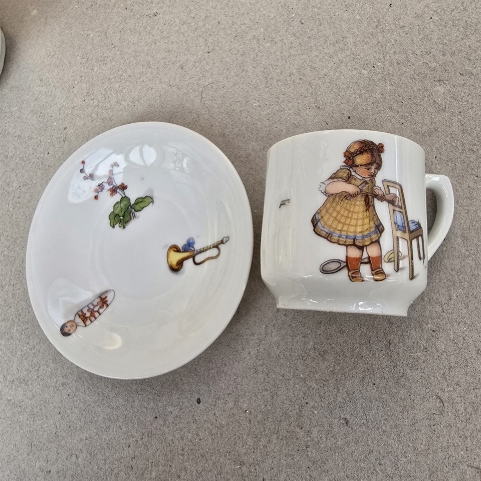 Giv dine børns te-selskaber et strejf af charme med vores "Dukke Porcelæns Retro Kaffestel med Børnefigurer"!