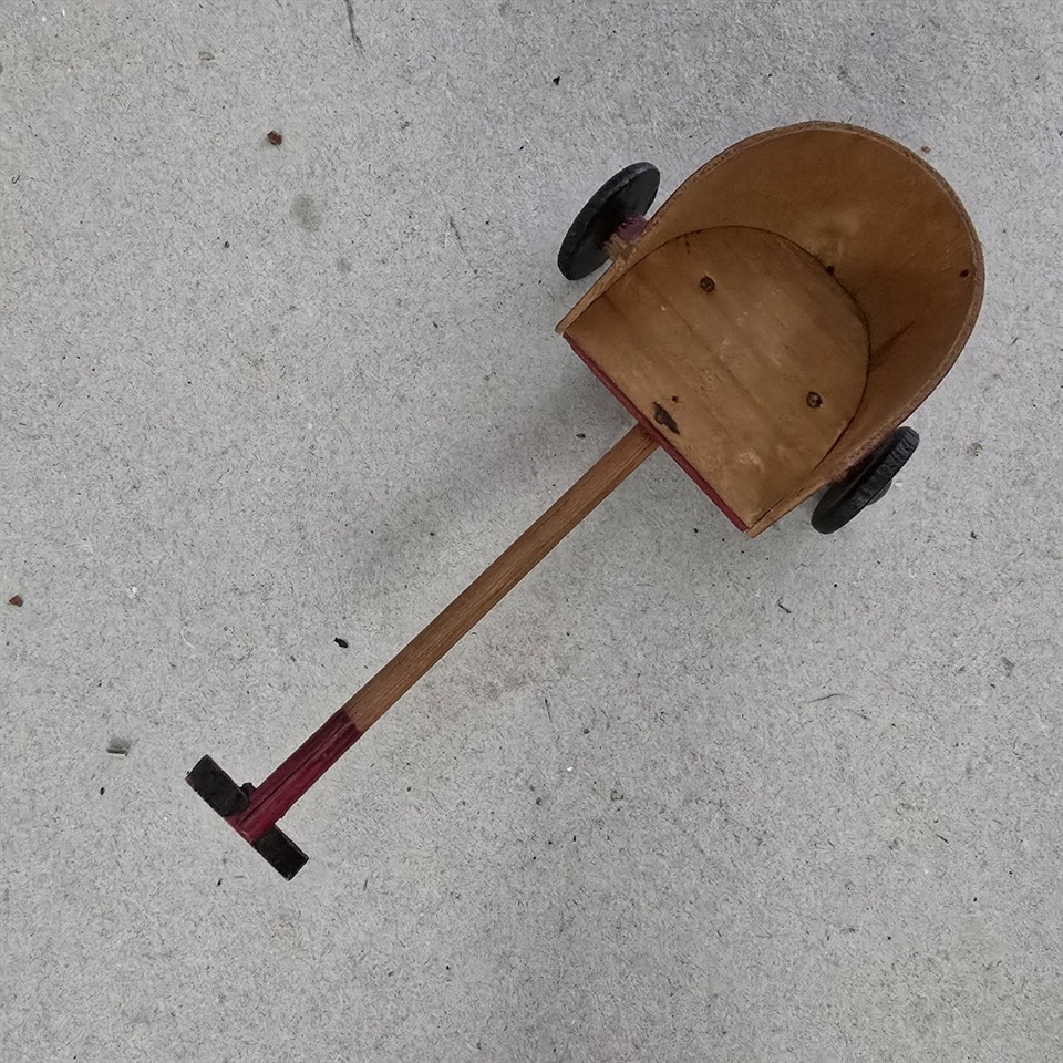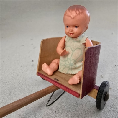 Dette gamle stykke legetøj bringer et strejf af god gammeldags leg ind i dit hjem, og er perfekt til den lille dukkeentusiast. Vognen er håndlavet i træ, hvilket sikrer holdbarhed og mange års leg.