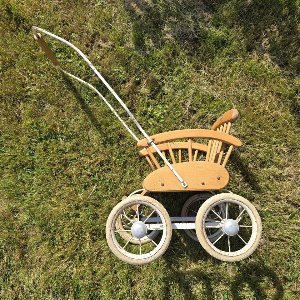Søger du den perfekte følgesvend til din lille dukkemor eller dukkefar? Tag et kig på vores charmerende "Dukkeklapvogn i træ og metal fra Winther legetøj" – en ægte klassiker med masser af stil!