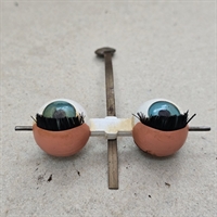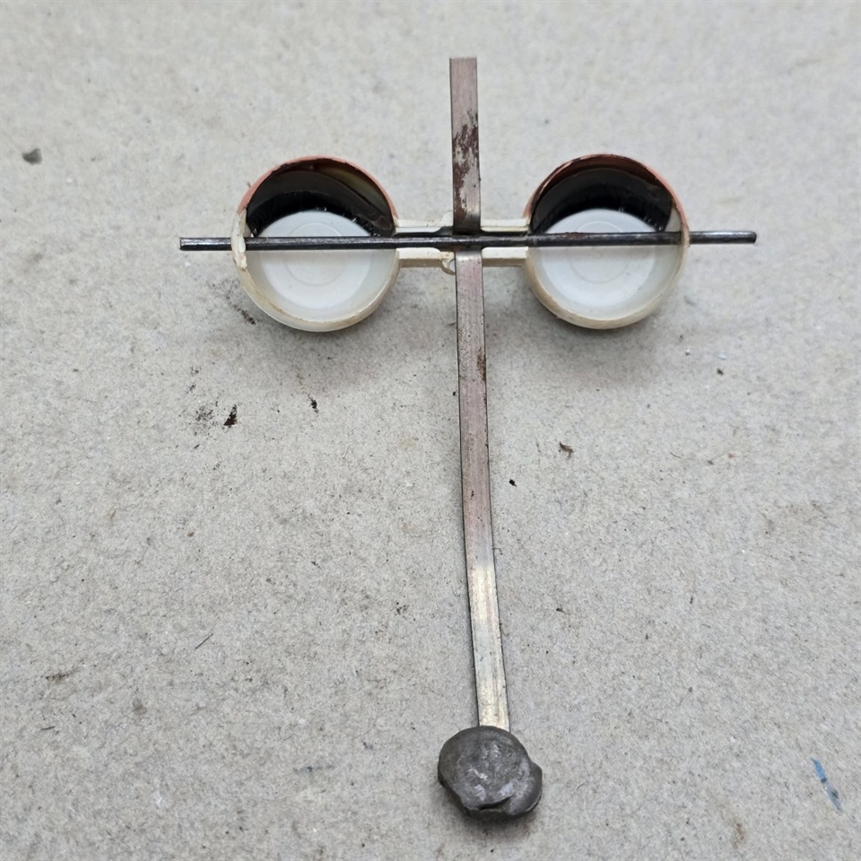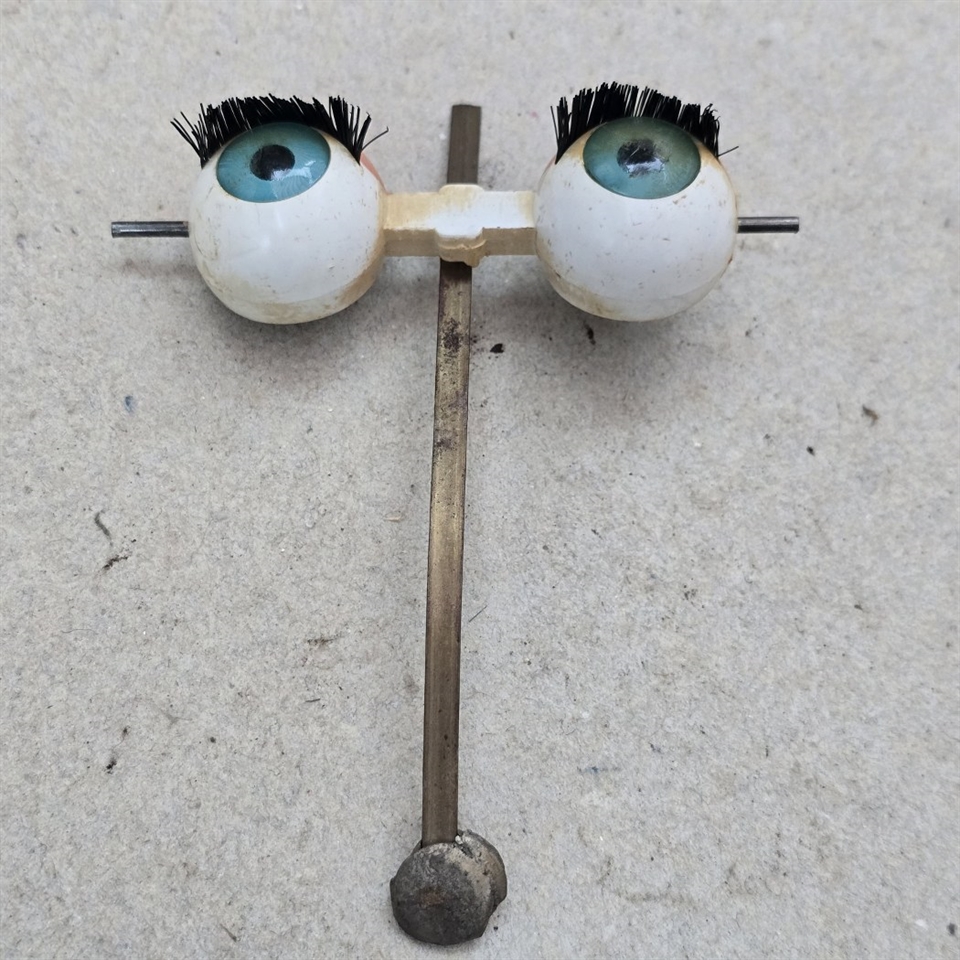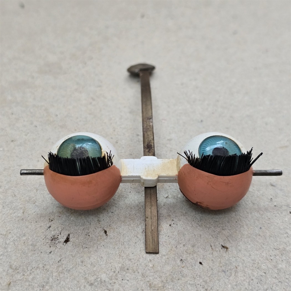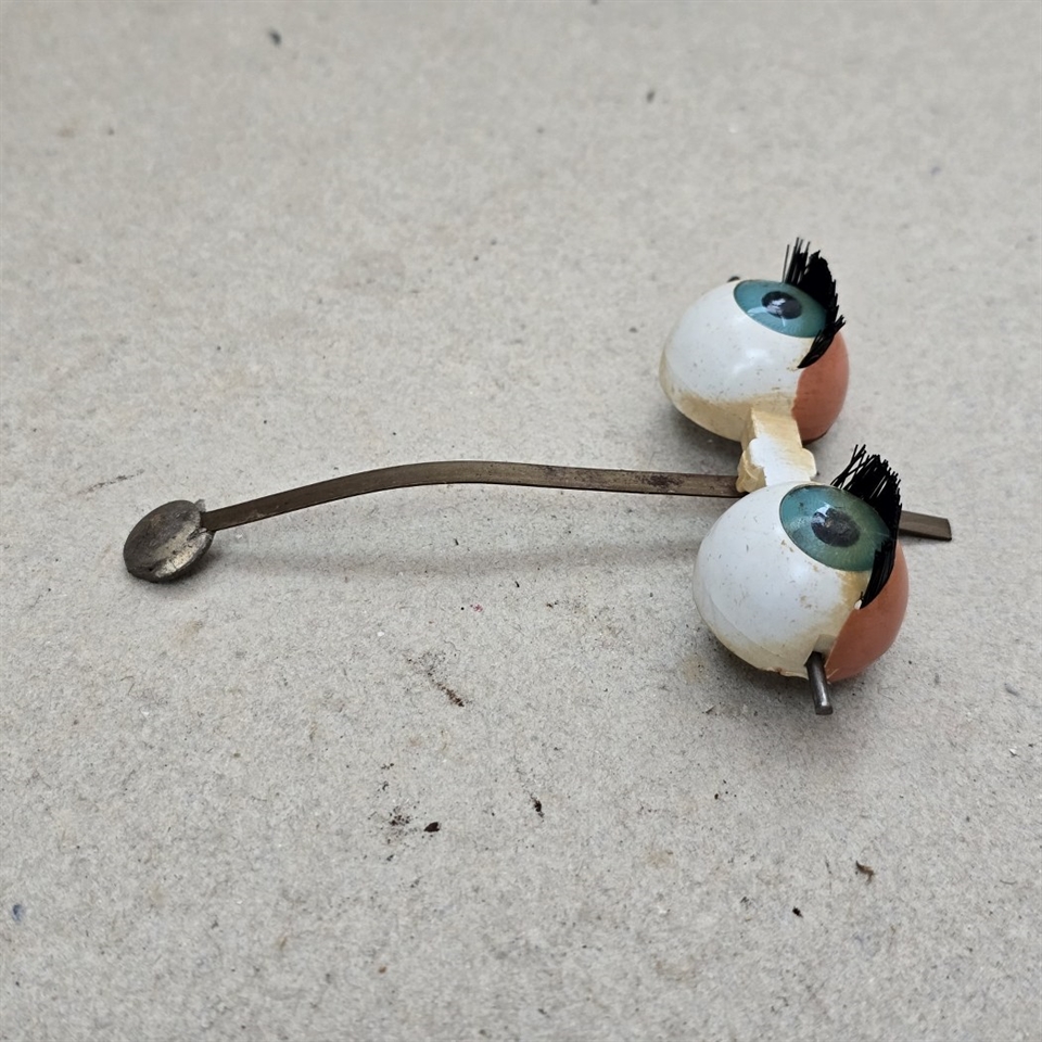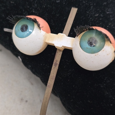 Opdag charmen og detaljerne i disse unikke 'Dukkeøjne med sorte vipper monteret på metal, gamle'.