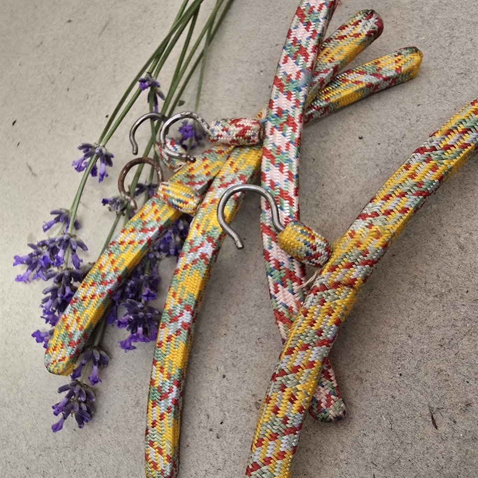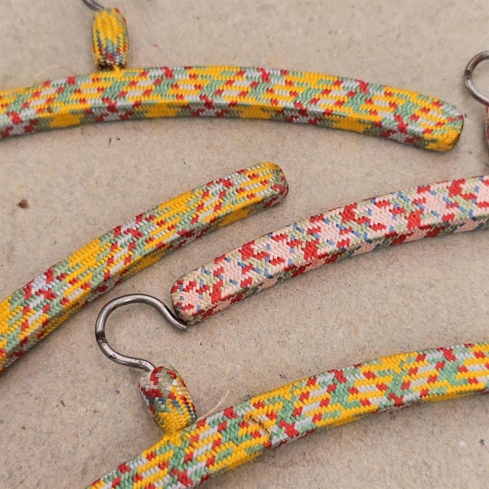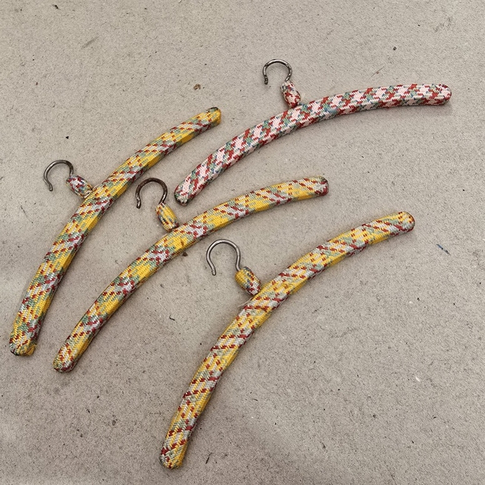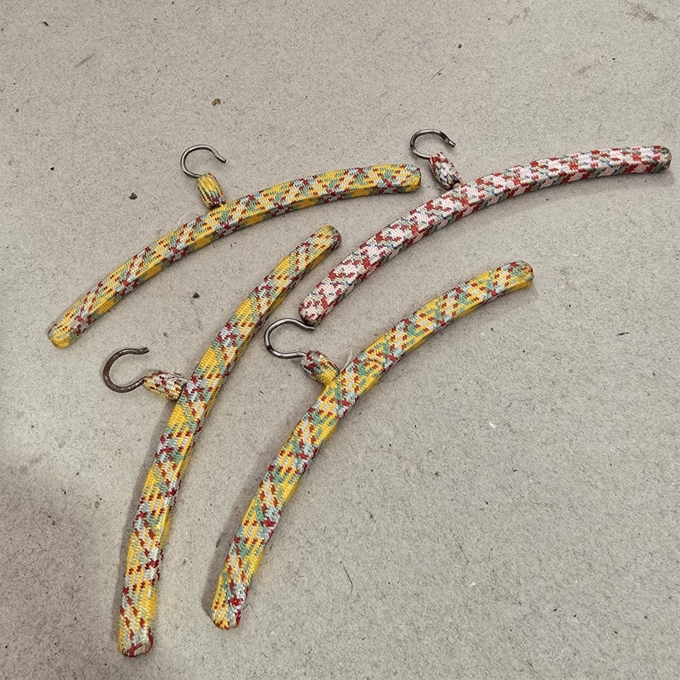 Disse smukt designede bøjler er ikke kun praktiske, men også en fryd for øjet, dækket med mønstret stof, der tilføjer et strejf af nostalgi og charme.