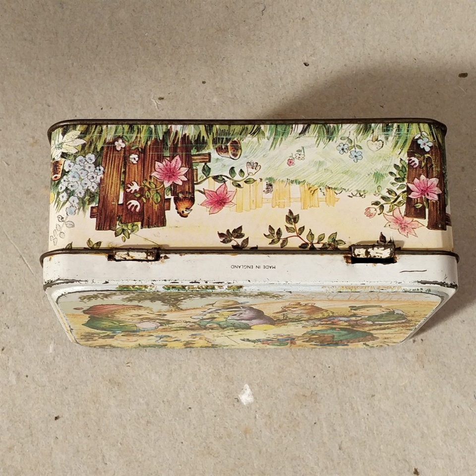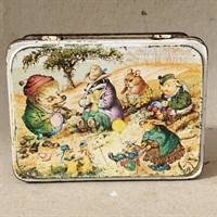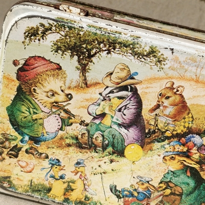 Denne særlige dåse fremviser et fascinerende design med forskellige dyr klædt i tøj, herunder et pindsvin med en violin og en grævling i tøj, der tilføjer et strejf af whimsy og nostalgi.