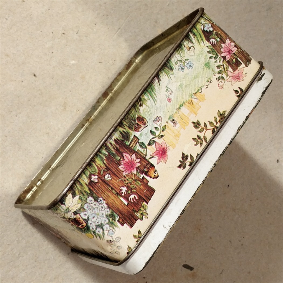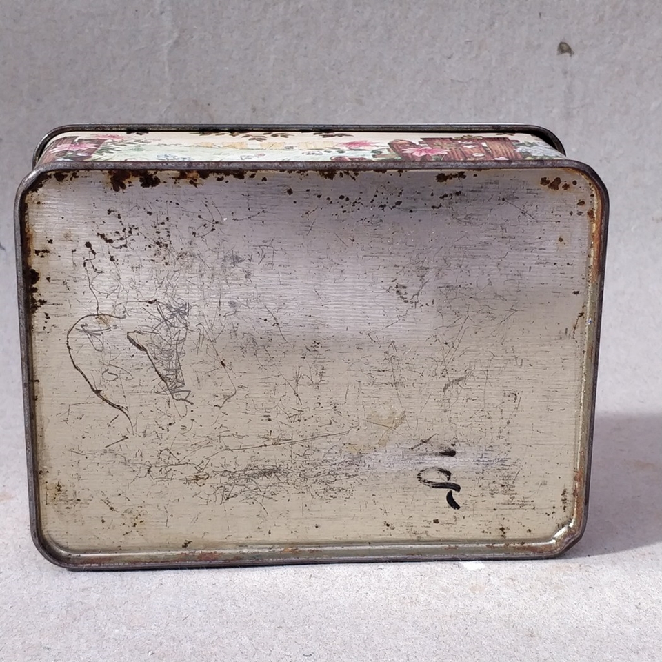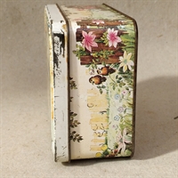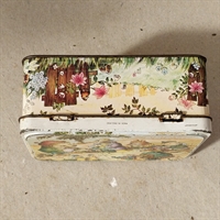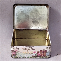 Denne æske er lavet af metal, der giver den et autentisk og klassisk udseende. Med målene 12x9 cm. og en højde på 5 cm., er denne dåse perfekt til opbevaring af småting som smykker, nøgler eller endda som en unik madpakkeæske.