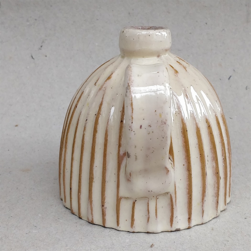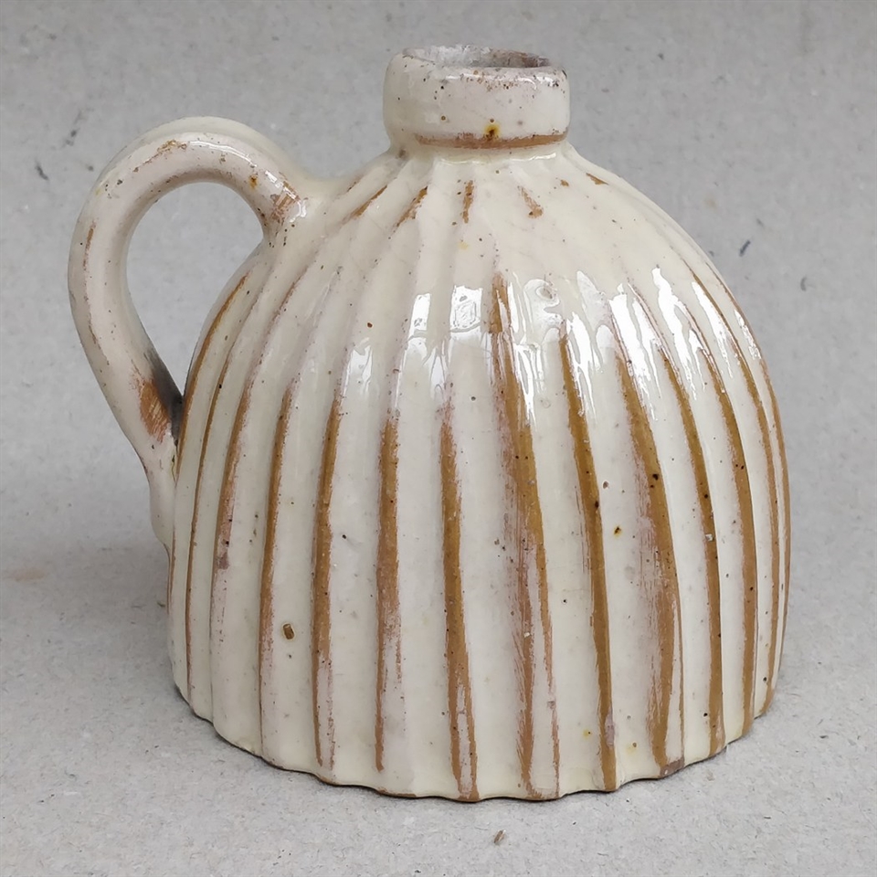 Den elfenbensfarvede glasur tilføjer en blød og varm aura til dit rum, mens det rillede design og den vintage æstetik bringer en følelse af nostalgi og klassisk skønhed.