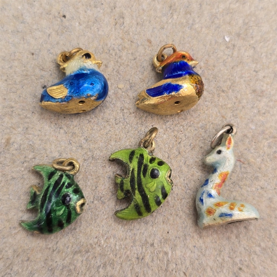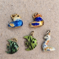 Opdag charmen ved fortiden med vores eksklusive sæt af 5 emaljerede vintage charms fra Tyskland!