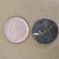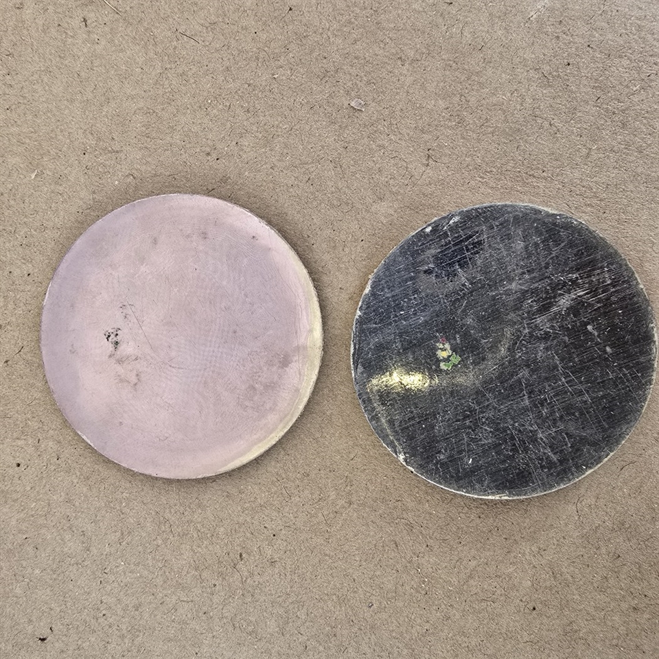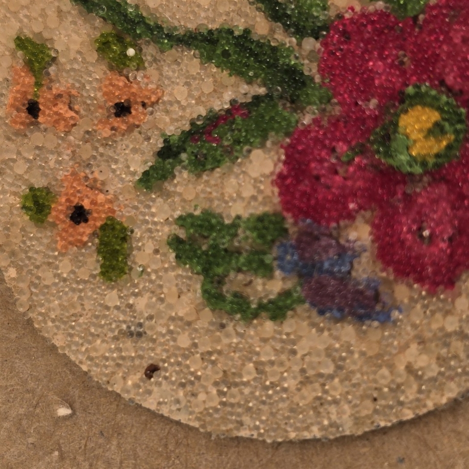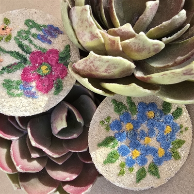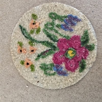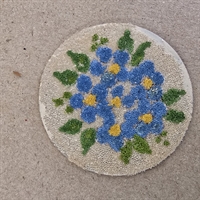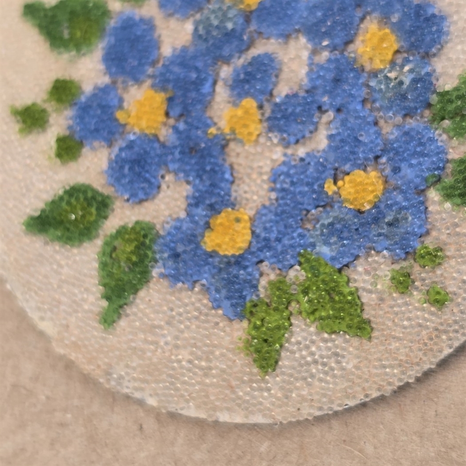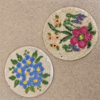 Oplev charmen ved vintage med 'En blå og en blandet buket, på rund metalplade, ubrændt emalje. 2 stk.'