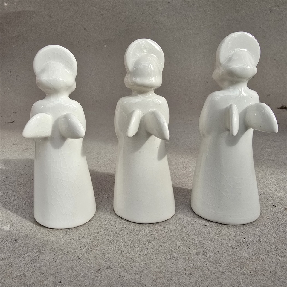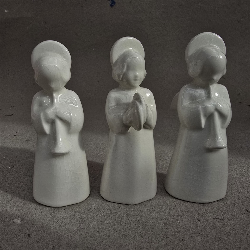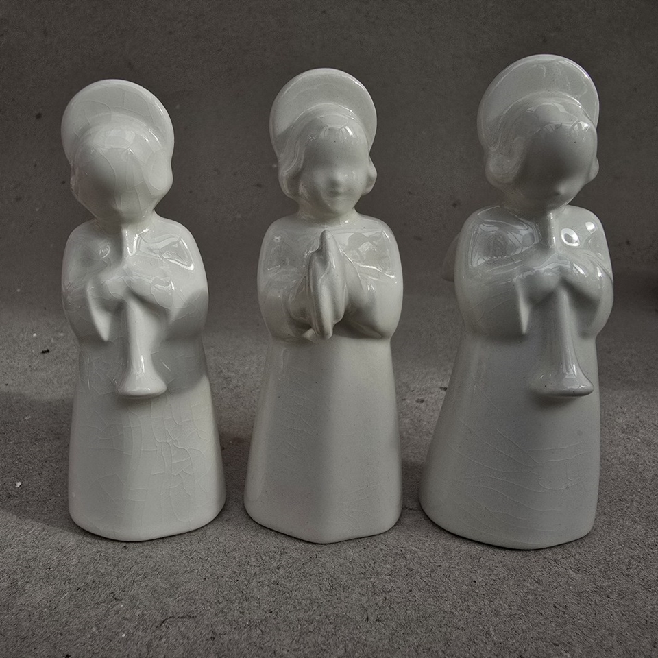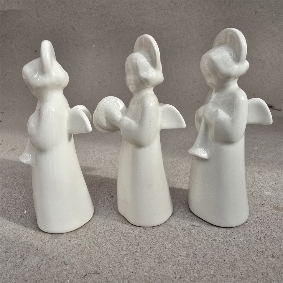 Disse tre hvide porcelænsengle vil tilføje en himmelsk harmoni til din festlige udsmykning.