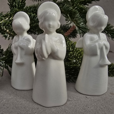 Hver engel står smukt og detaljeret fremstillet på 9,5 cm. i højden, perfekt til at pynte enhver kaminhylde, hylde eller julebord.