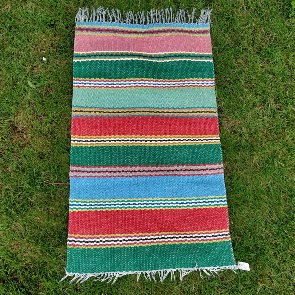 Opgrader din indretning med et farverigt touch med vores '62 x 105 cm. farveglade gamle plastik kludetæppe'.