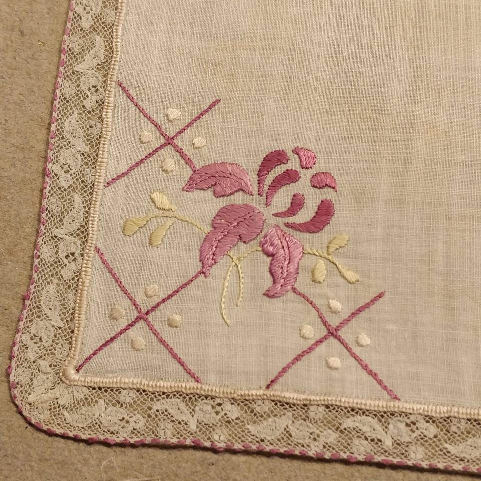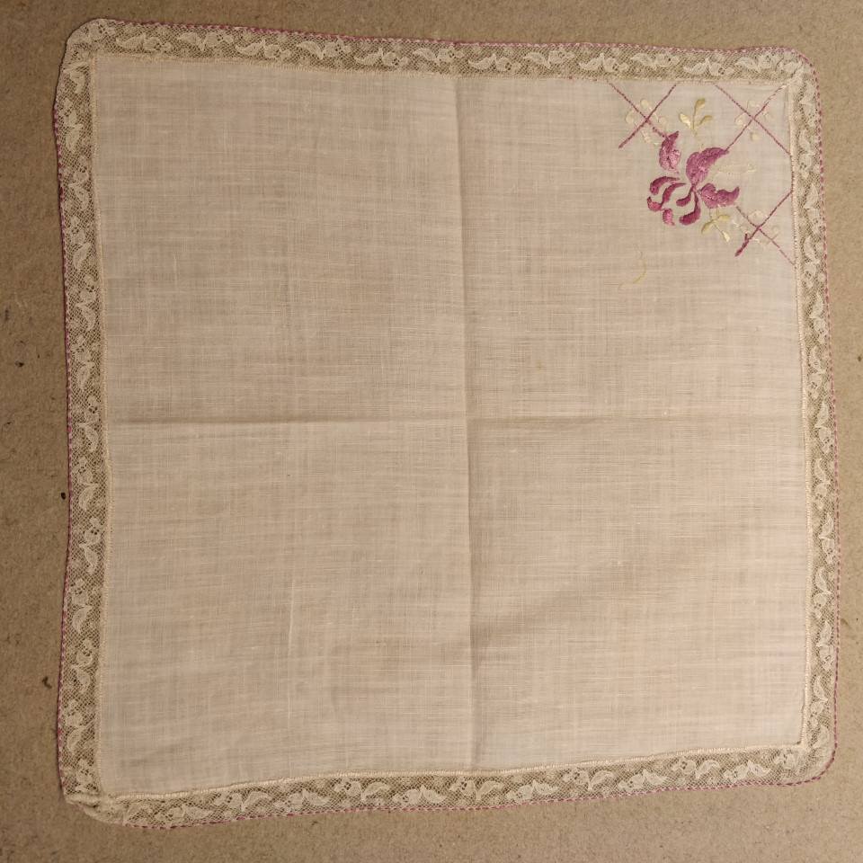Hvidt vintage lommetørklæde, som kan bruges til dit bryllup. Lommetørklædet er brugt.