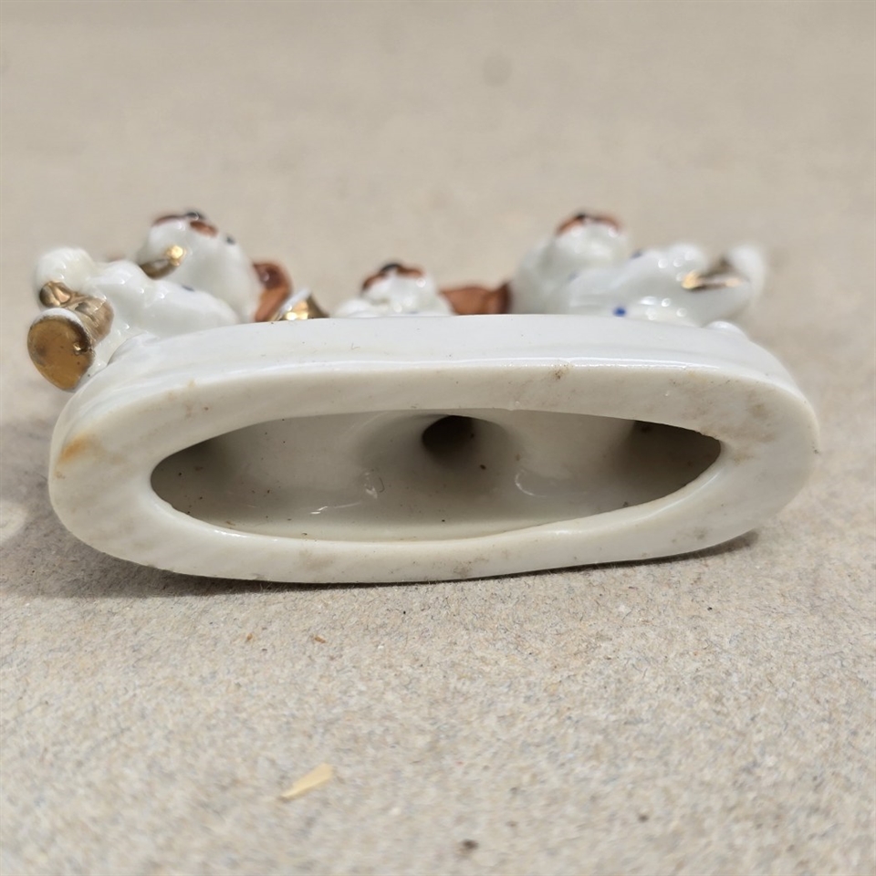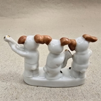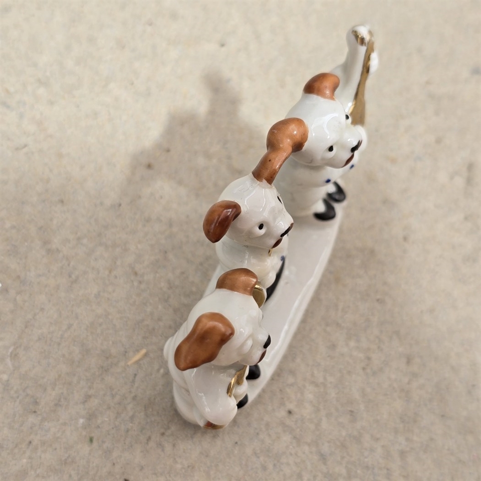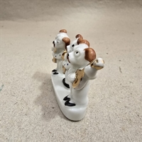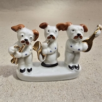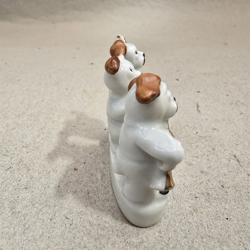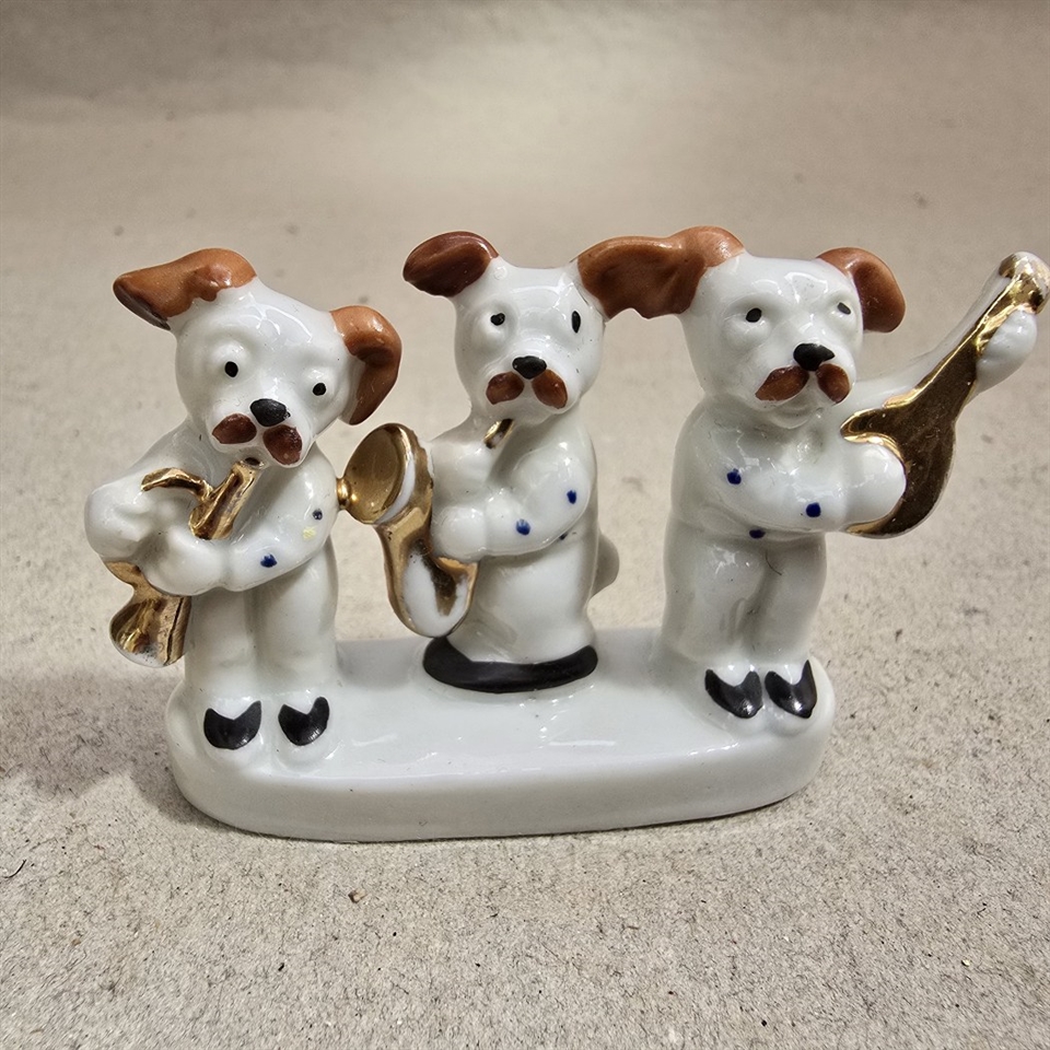 Opdag charmen og humoren i vores unikke porcelænsfigurgruppe, "Hunde der spiller på forskellige instrumenter". Disse elskelige porcelænshunde, hver især omkring 5 cm. høje, vil uden tvivl tilføje et sjovt og musikalsk præg til enhver indretning.