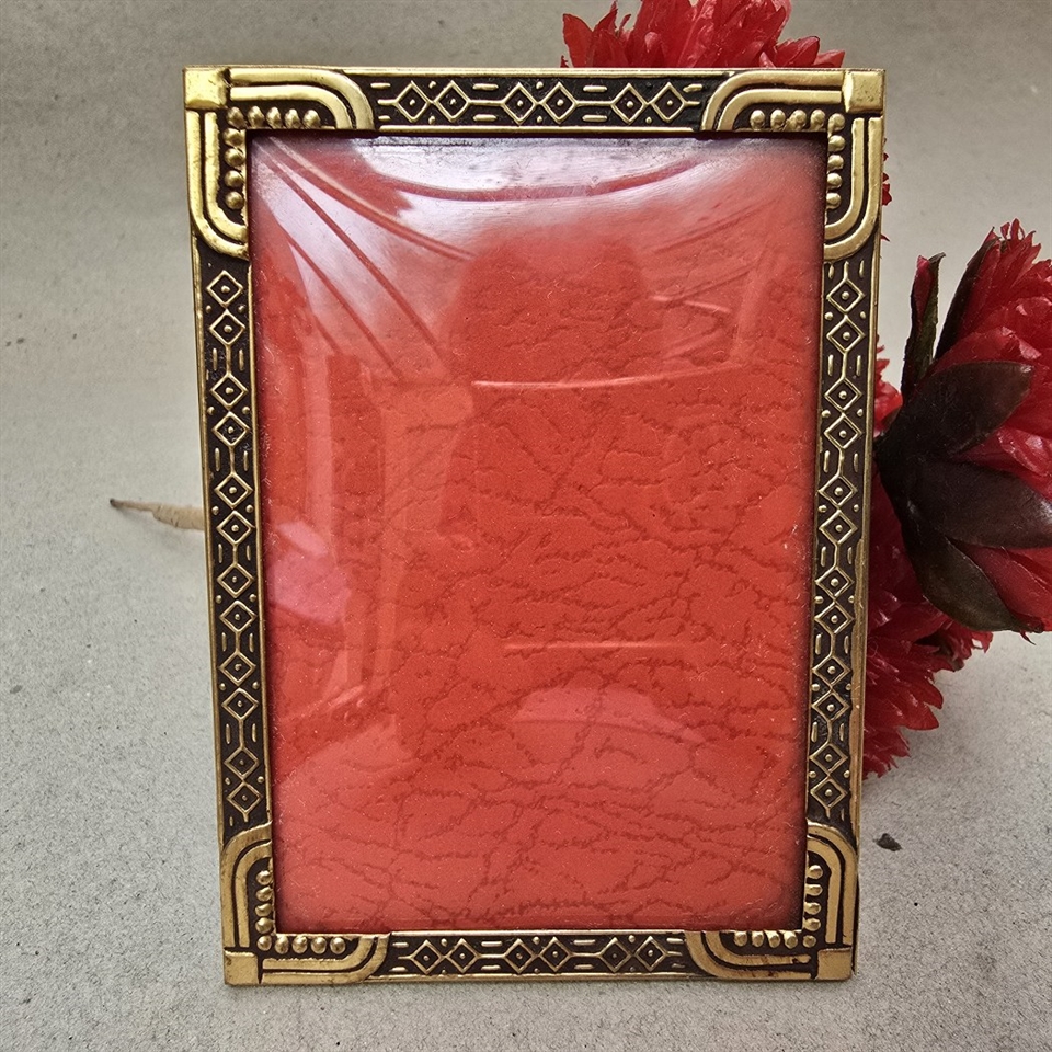 Investér i skønhed og tradition med vores "Fin dekoreret gammel messing fotoramme med buet glas" – et virkeligt mesterværk, der er designet til at berige dit hjem og bevare dine mest elskede øjeblikke.