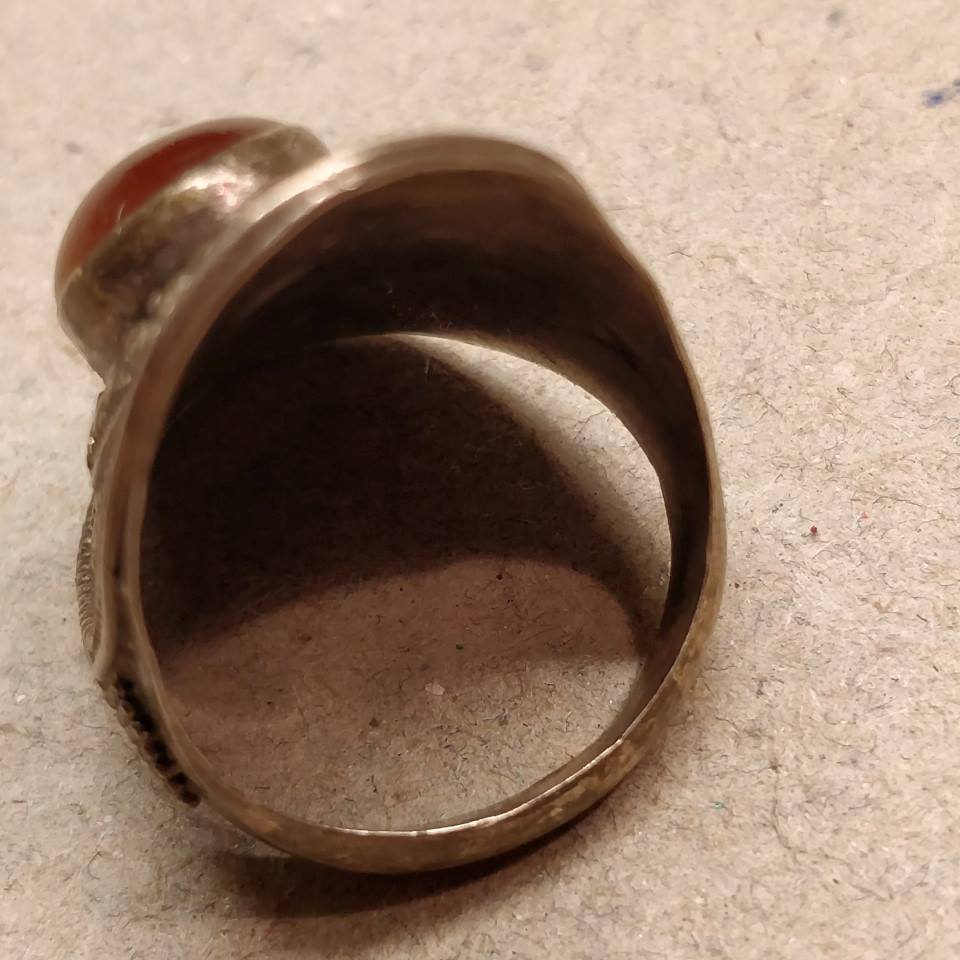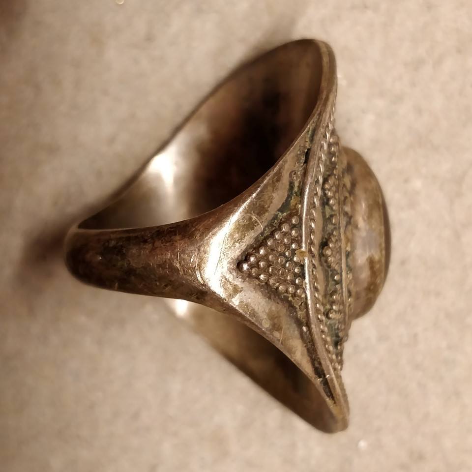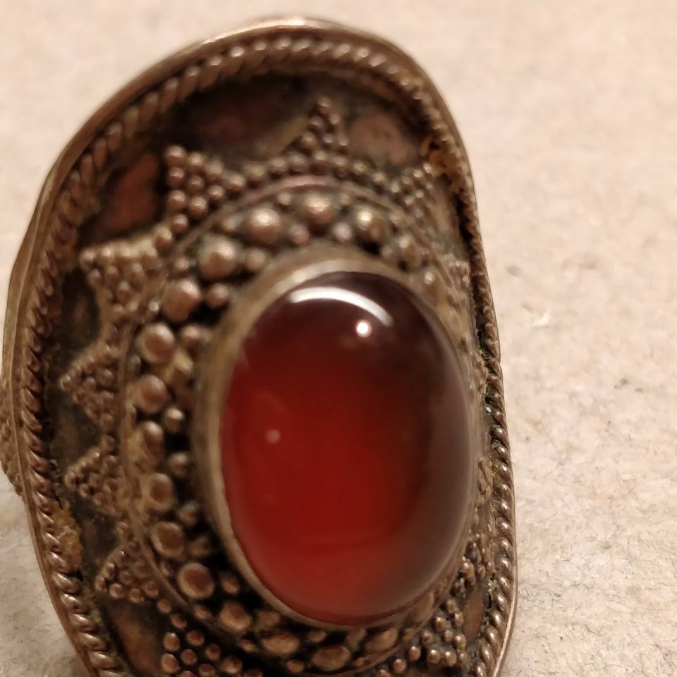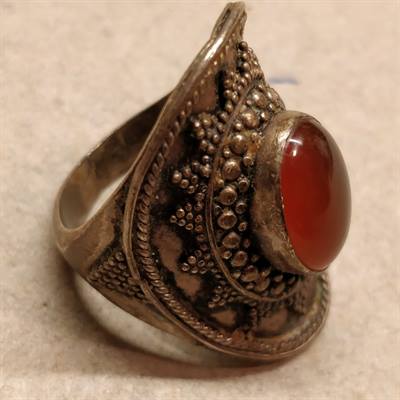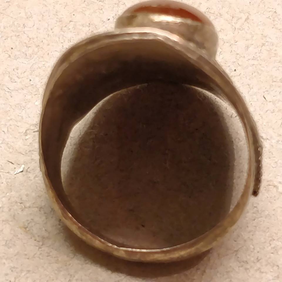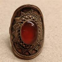 Brun sten, fingerring, sølv, stempel C L 925. Str. 57