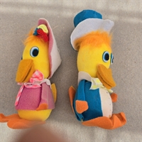 Perfekt til at placere på påskebordet, i vindueskarmen eller som en del af en større påskedekoration. "Fjolle ænder i tøj retro påskepynt" er ideelle for enhver, der ønsker at bringe et smil på læben og tilføje en unik, retro flair til deres påskefejring.