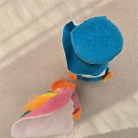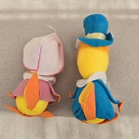 Vores håndværksmæssigt fremstillede ænder måler 16 cm. i højden og er klædt i øjenfaldende retro tøj. Andemor skinner smukt i sin rosa dragt, mens andefar er uimodståelig i sit turkis og hvidt tøj. Med deres livlige gule og orange næb og fødder tilfører disse ænder en munter og festlig atmosfære til dit hjem.