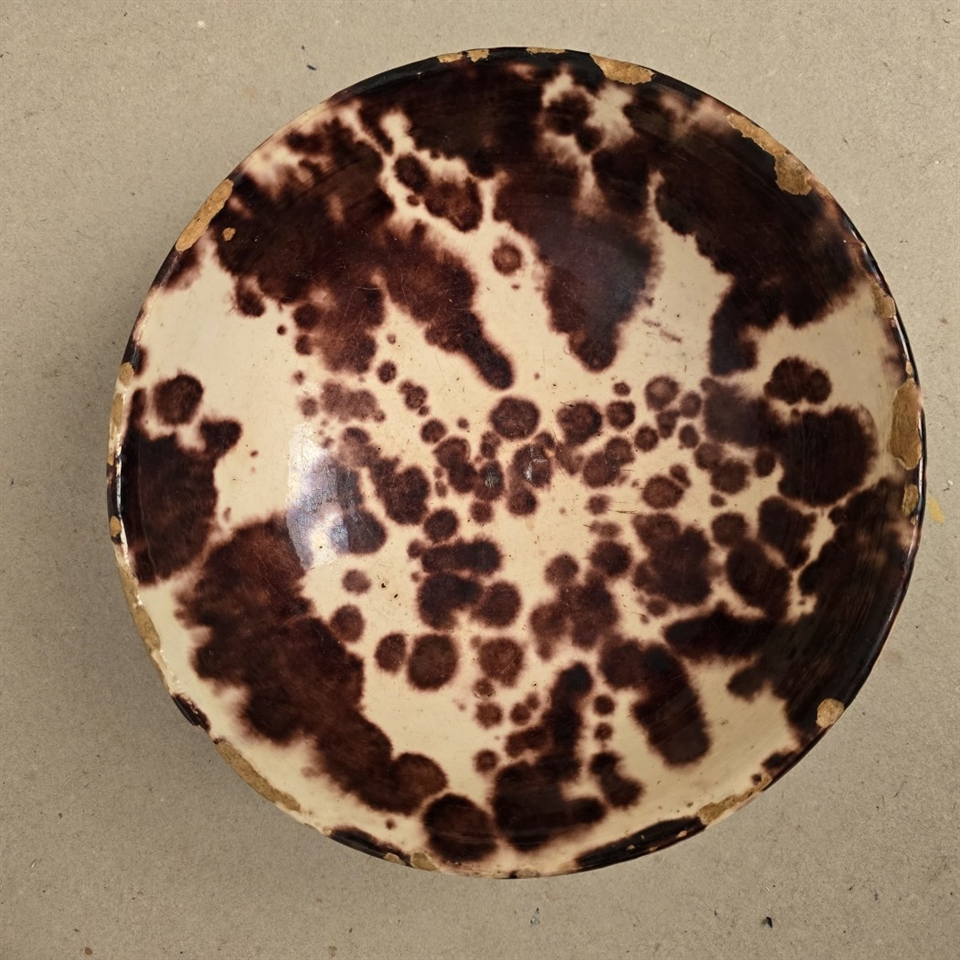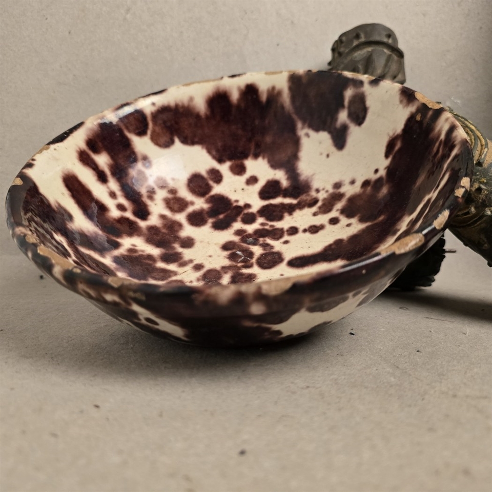 Oplev skønheden i historie med denne smukke 'Flot patineret antik lerskål, gammel frugtskål'.