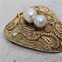 Denne eksklusive broche er udført i forgyldt sølv med en højde på 4,7 cm. og prydes af to strålende perler, der tilføjer et touch af raffinement og klasse.