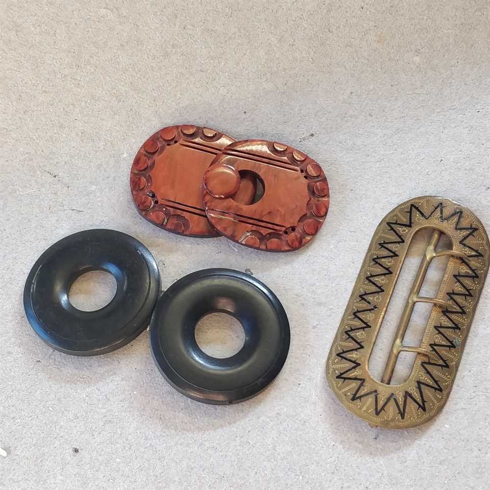 Hvert sæt indeholder tre nøje udvalgte spænder i forskellige former - runde og ovale - hver med sit eget retro-design, der garanteret vækker opmærksomhed.