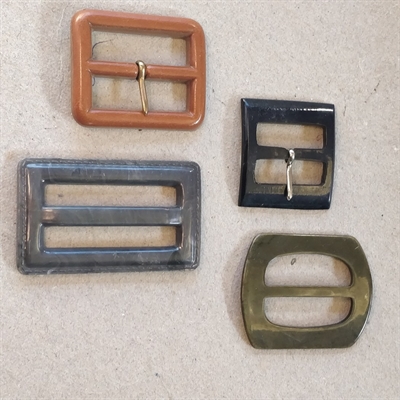 Opgrader din garderobe med et strejf af nostalgisk charme med vores sæt af 'Forskellige former retro plastik bæltespænder. 4 stk.'