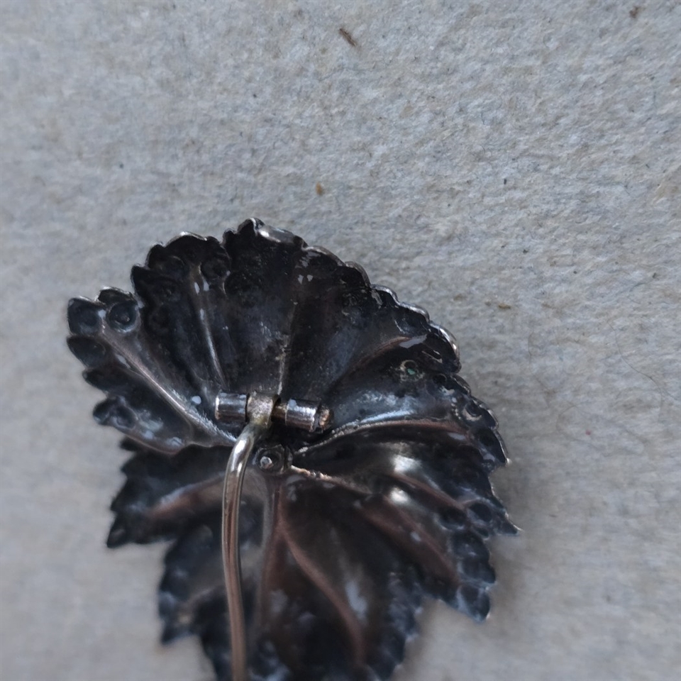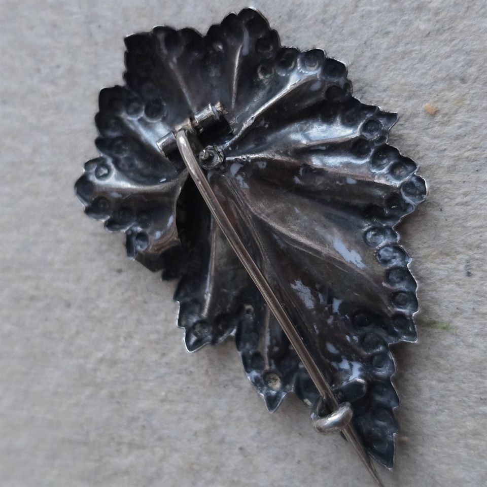 Gør dit outfit uforglemmeligt med denne eksklusive og imponerende forsølvet bladbroche, et symbol på raffinement og unik æstetik. En ægte skat, der vil blive værdsat og beundret gennem generationer.