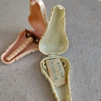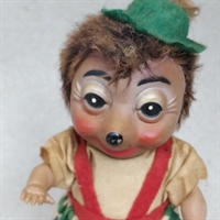 Dukkebuste, gammel porcelæn gyldne lokker blåt pandebånd.