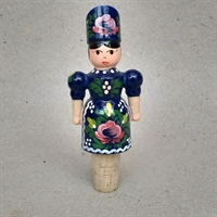 Skænkeprop, gammel dame med gul hat, porcelæn.
