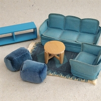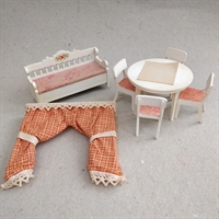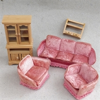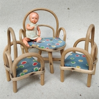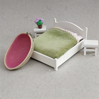 Silkebeklædt dukke flet vugge, med tilbehør. Gammel.