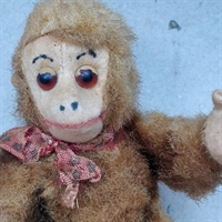 Pop op mekanisk hund i kurv, gammelt legetøj. Japan.