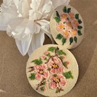 Runde retro julekugler med hvid, pink, rød dekoration. 8 stk.