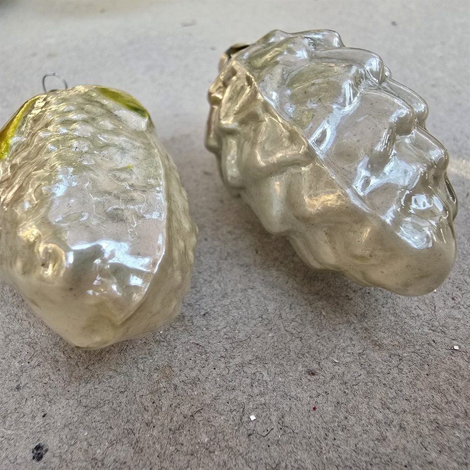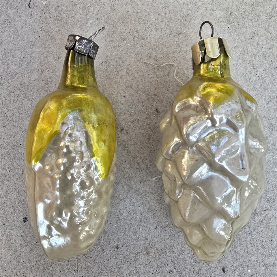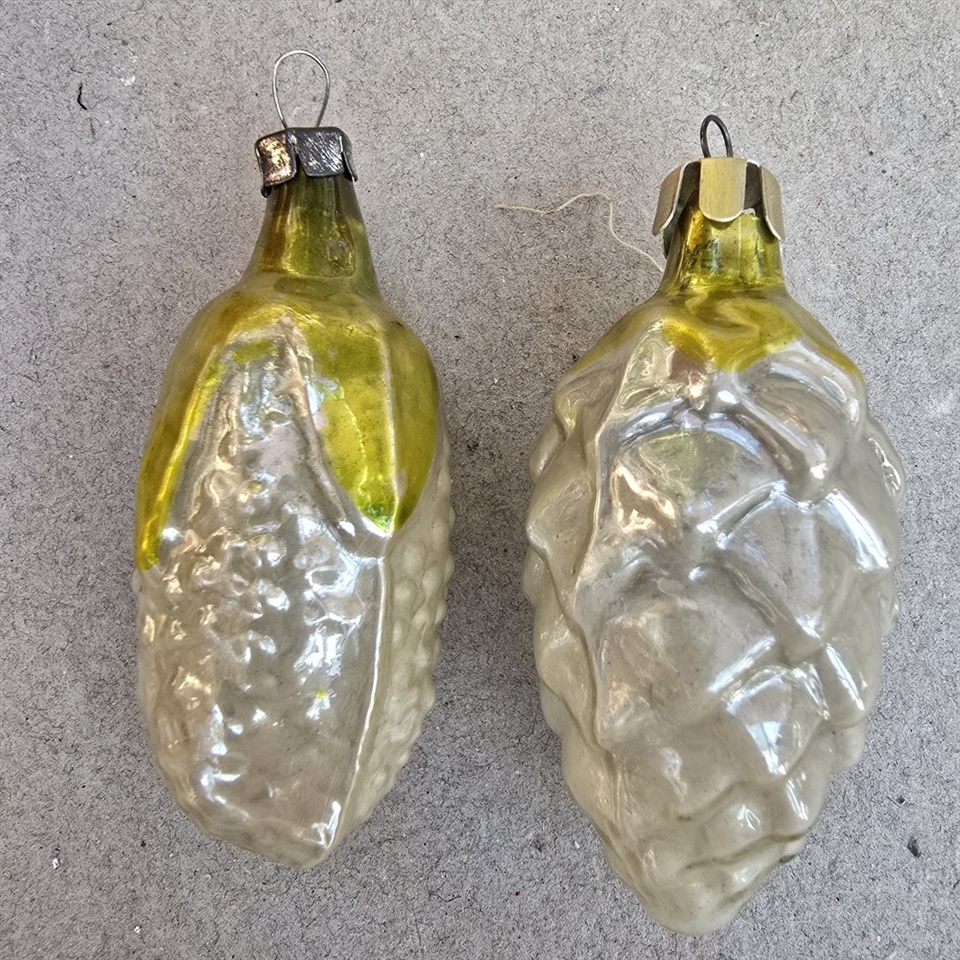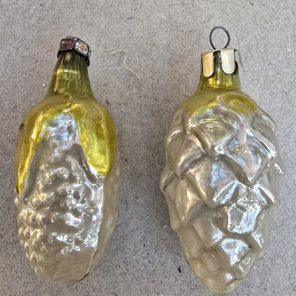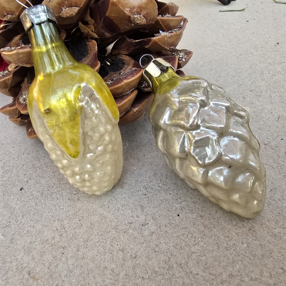 Dette unikke sæt består af to stykker vintage julepynt i glas, der vil tilføre et strejf af gammeldags glæde til din juletræsdekoration.