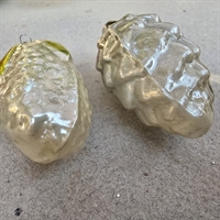 Med dette sæt får du en delikat glasfrugt, der måler 5,5 cm. i længden. Frugtens lille knækkede hals tilføjer et unikt præg af antik charme, som om den fortæller historier fra gamle dage.