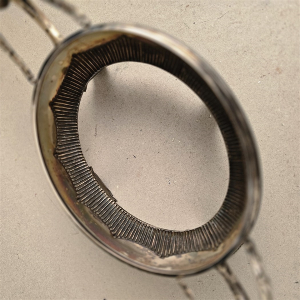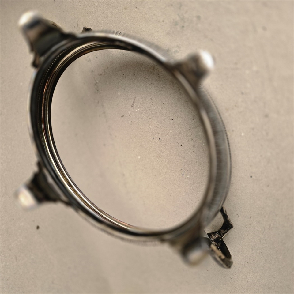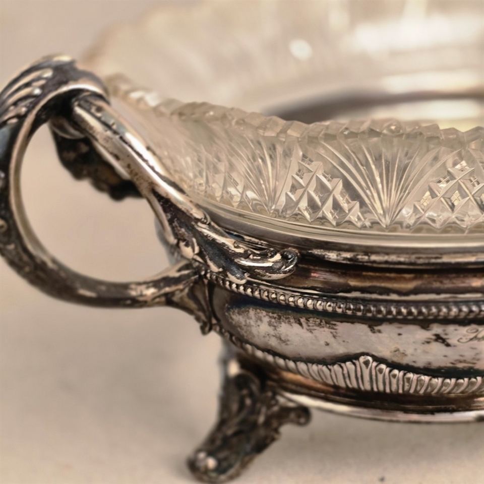 Skålen er fremstillet i en eksklusiv forsølvet holder, der skinner med en næsten spejlende finish efter pudsning, hvilket giver et luksuriøst udtryk til enhver borddækning.
