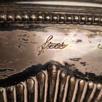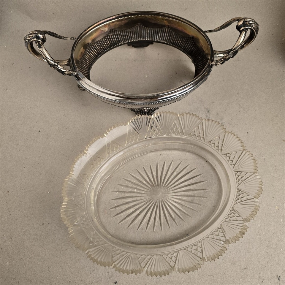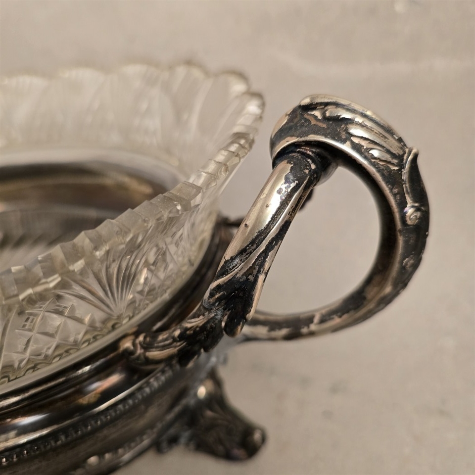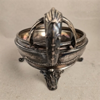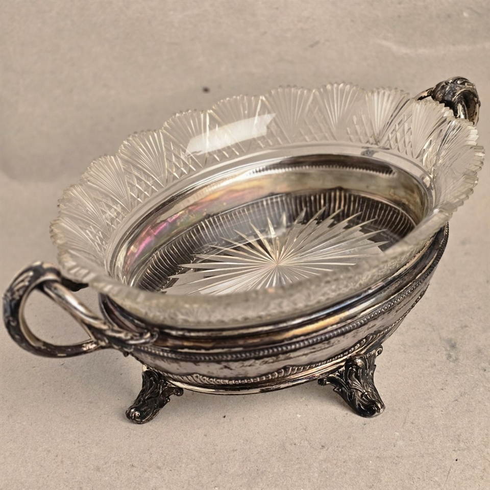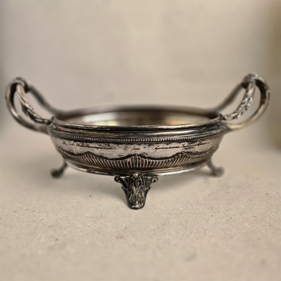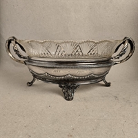 Oplev den tidløse elegance med "Frugtskål i forsølvet med glasindsats, gammel skål" – et sandt mesterværk af historisk og æstetisk værdi.