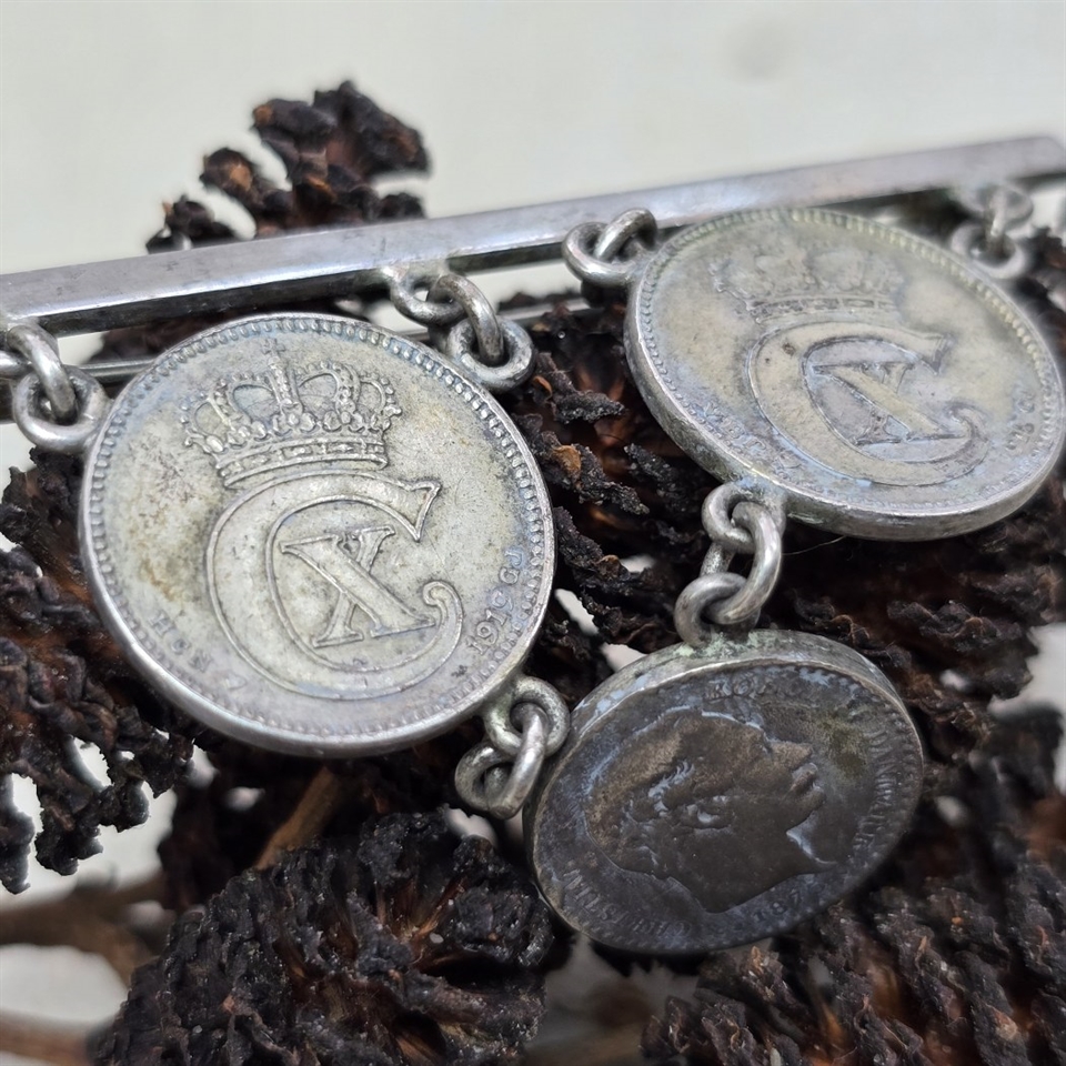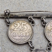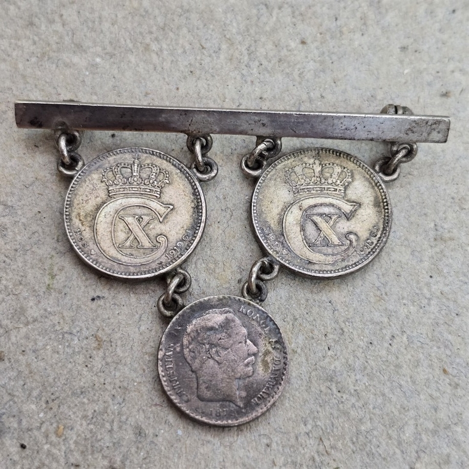 Oplev en tidløs elegance med vores eksklusive 'Gamle mønter på nål, 25 øre fra Christian X, retro broche'.