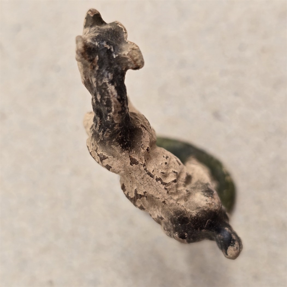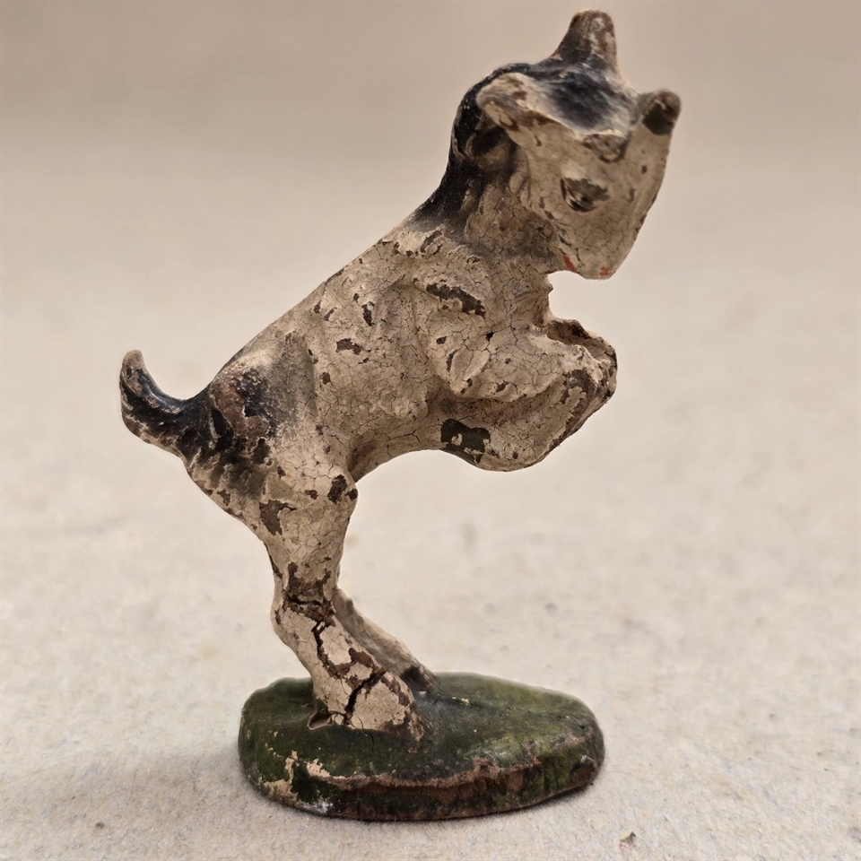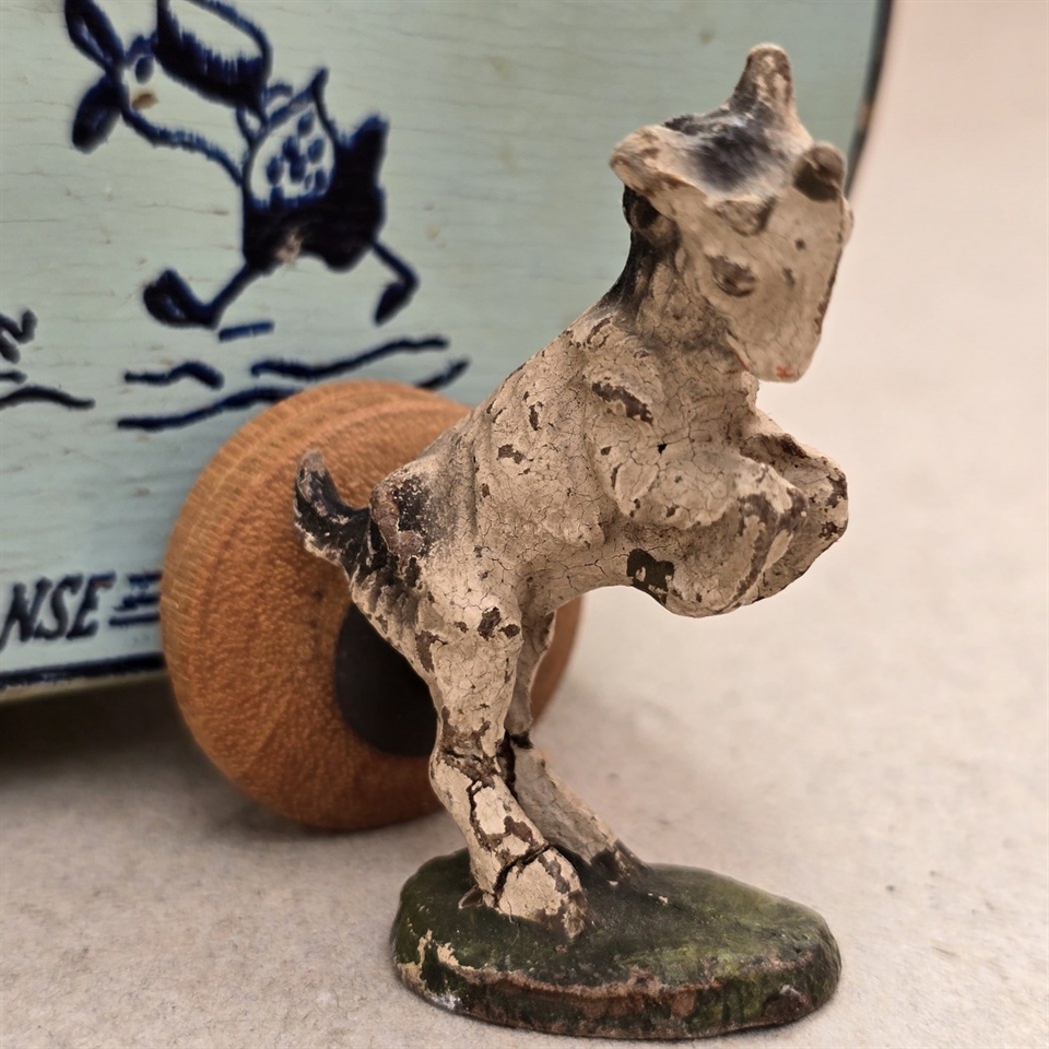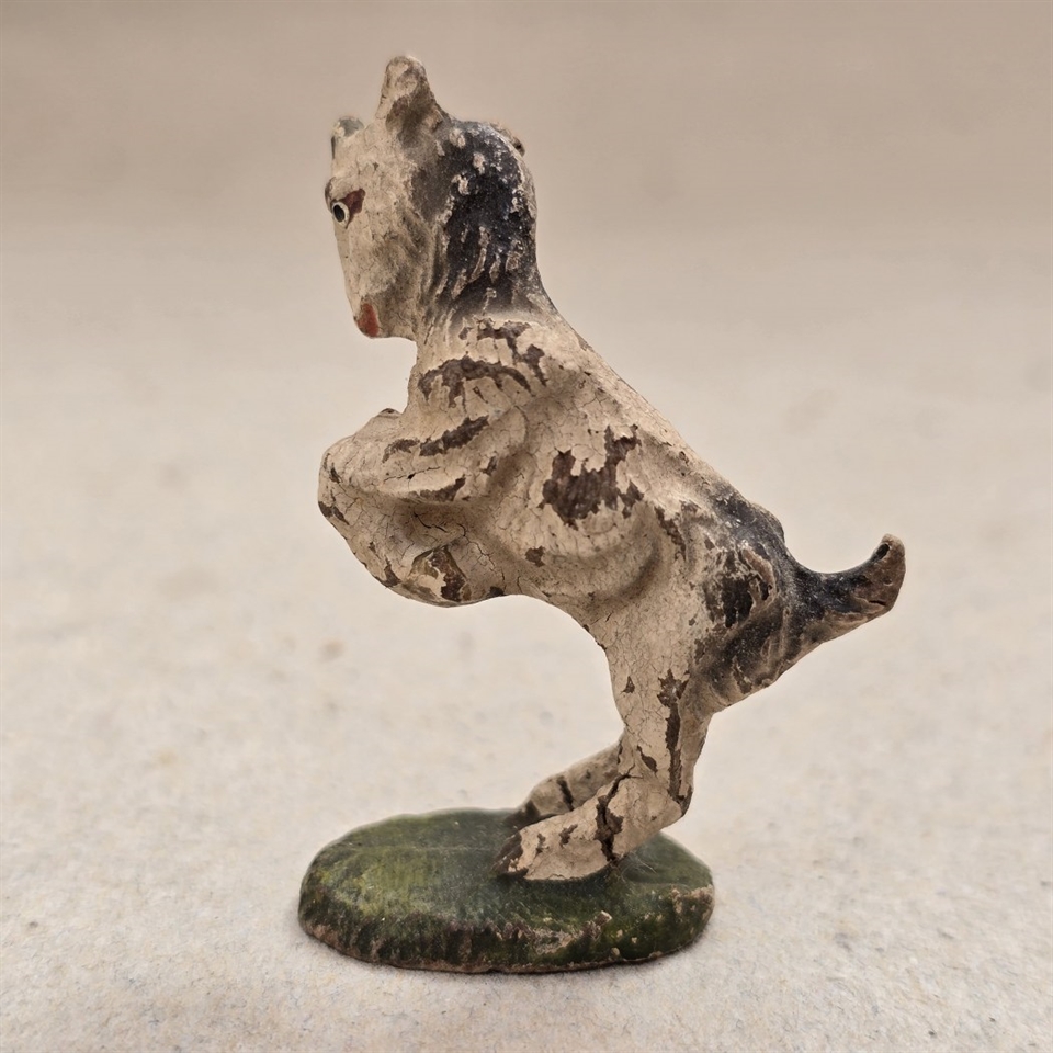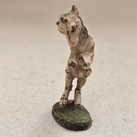 Gedekid står stolt på sine bagben og måler 5,4 cm. i højden, hvilket gør det til en perfekt tilføjelse til enhver samling af vintage legetøj.