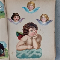 Opdag charmen ved nostalgi med vores eksklusive 'Glansbilled-album med blandede retro glansbilleder'. Dette unikke album er fyldt med en vidunderlig samling af klassiske motiver, herunder engle og duer, der bringer minderne fra fortiden til live. Albummet måler 23x28 cm og tilbyder en perfekt platform til at vise og bevare disse skønne billeder.
