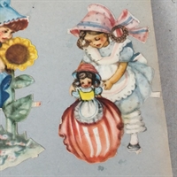 Inde i albummet finder du en mangfoldighed af glansbilleder, herunder et særpræget gammelt glansbillede af en pige på en trehjulet cykel med røde hjul, som uden tvivl vil vække minder og fortælle historier fra svundne tider.