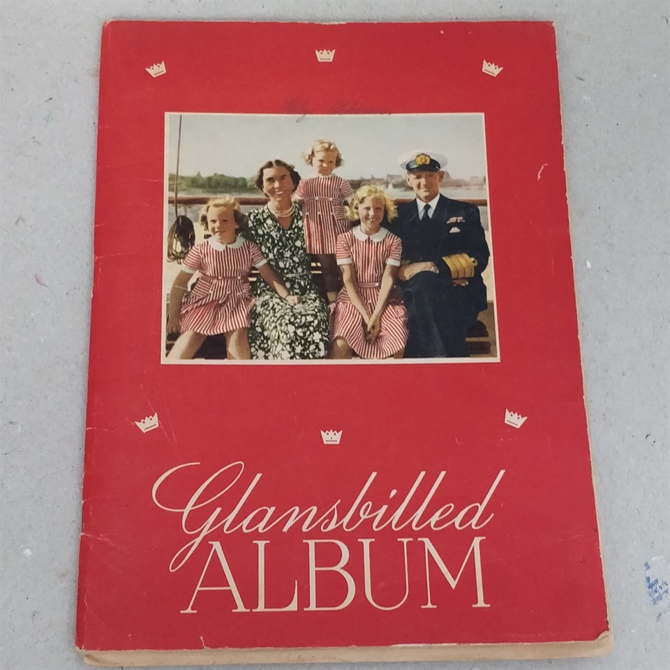 Opdag skønheden og charmen fra en svunden tid med vores 'Glansbillede Album: Kongen og Dronningen med de 3 Prinsesser på Forsiden'.