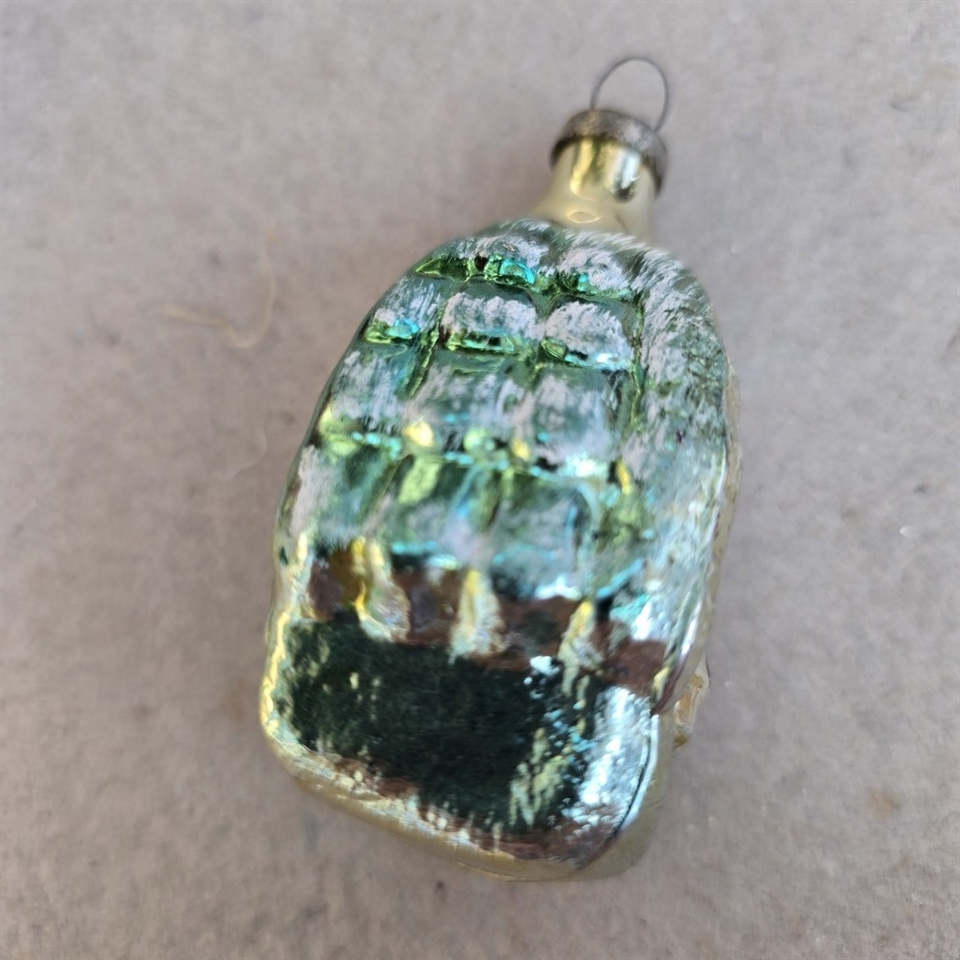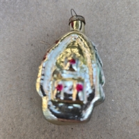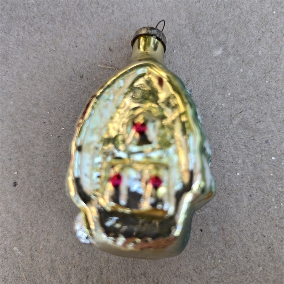 Opdag magien ved julen med vores fortryllende 'Glas juletræspynt, hus med grønt tag, gammel julekugle'.