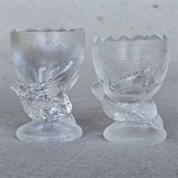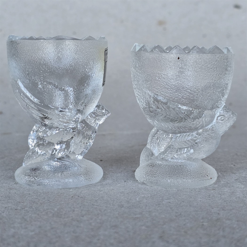Opgrader din morgenmadsoplevelse med disse charmerende 'Glasklare æggebægre på fod dekoreret med høns'.